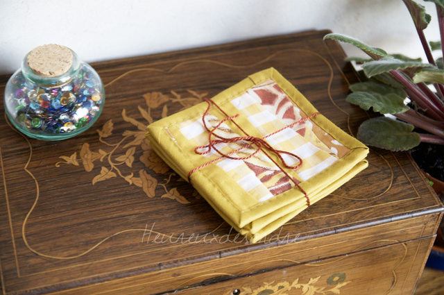 Ensemble de petits patchworks pouvant servir pour poser des verres ou des tasses.