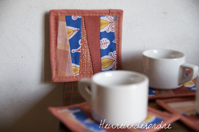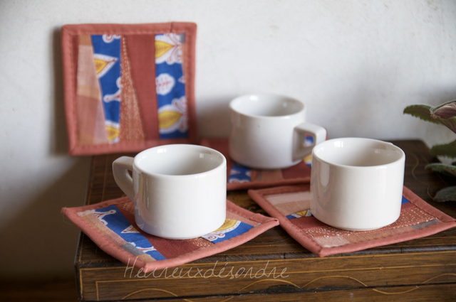 Ensemble de petits patchworks pouvant servir pour poser des verres ou des tasses.
