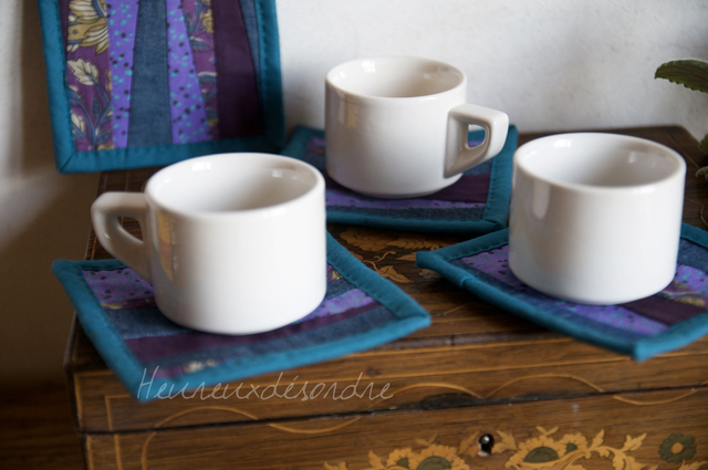 Ensemble de petits patchworks pouvant servir pour poser des verres ou des tasses.