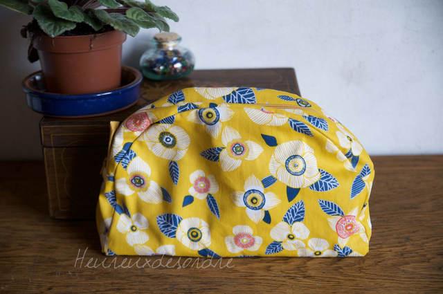 Fond plat, grande fermeture éclair, languette pour l'accrocher, doublée en coton avec poche intérieure.